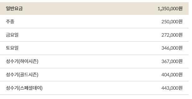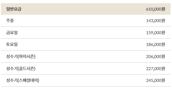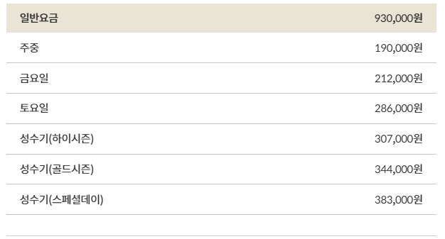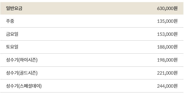 ☞대명리조트 객실요금 (무기명,비발디 기준)