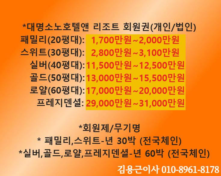 *대명 소노펠리체 회원권 / 대명 델피노 회원권/ 대명 소노캄회원권 / 대명 쏠비치회원권 / 대명 소노벨회원권/ 대명 소노문회원권/ 대명 소노휴회원권