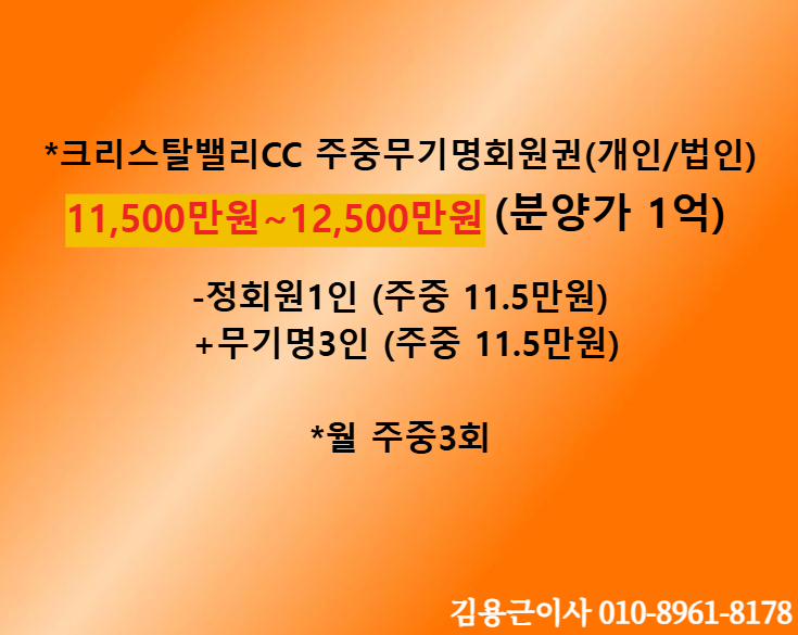 -크리스탈밸리CC회원권 종류크리스탈밸리CC 일반무기명회원권 (분양가2억/3억)