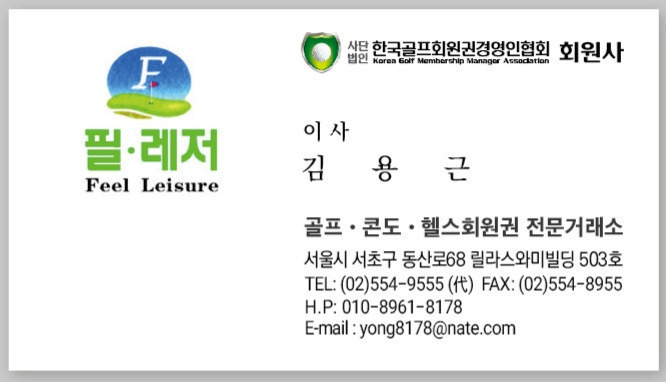 사단법인 한국골프회원권경영인협회 정회원사 "필레저" 대표 김용근 올림