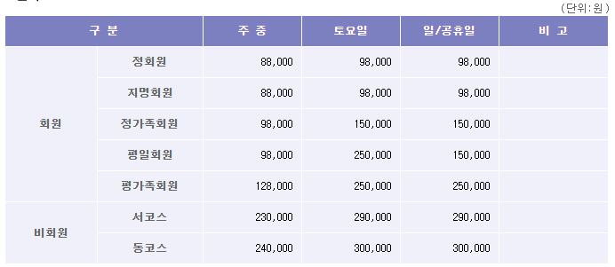 -정회원1인 (주중 9.8만원 / 주말 25만원)
