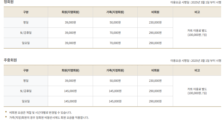 *주말 잔여타임 예약가능(월2회) *지정회원 주중 단독라운딩가능 |
